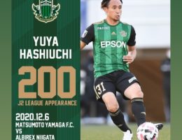 本校OBで現在、松本山雅FCに所属している橋内優也 選手がJ2通算200試合出場を達成したことをお知らせ致します。