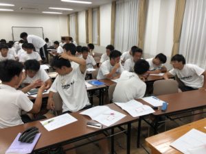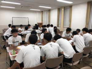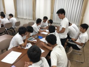 夜は食事後に、iPadで撮影した紅白戦を各チームで分析をするなど内容の濃いミーティングとなりました。