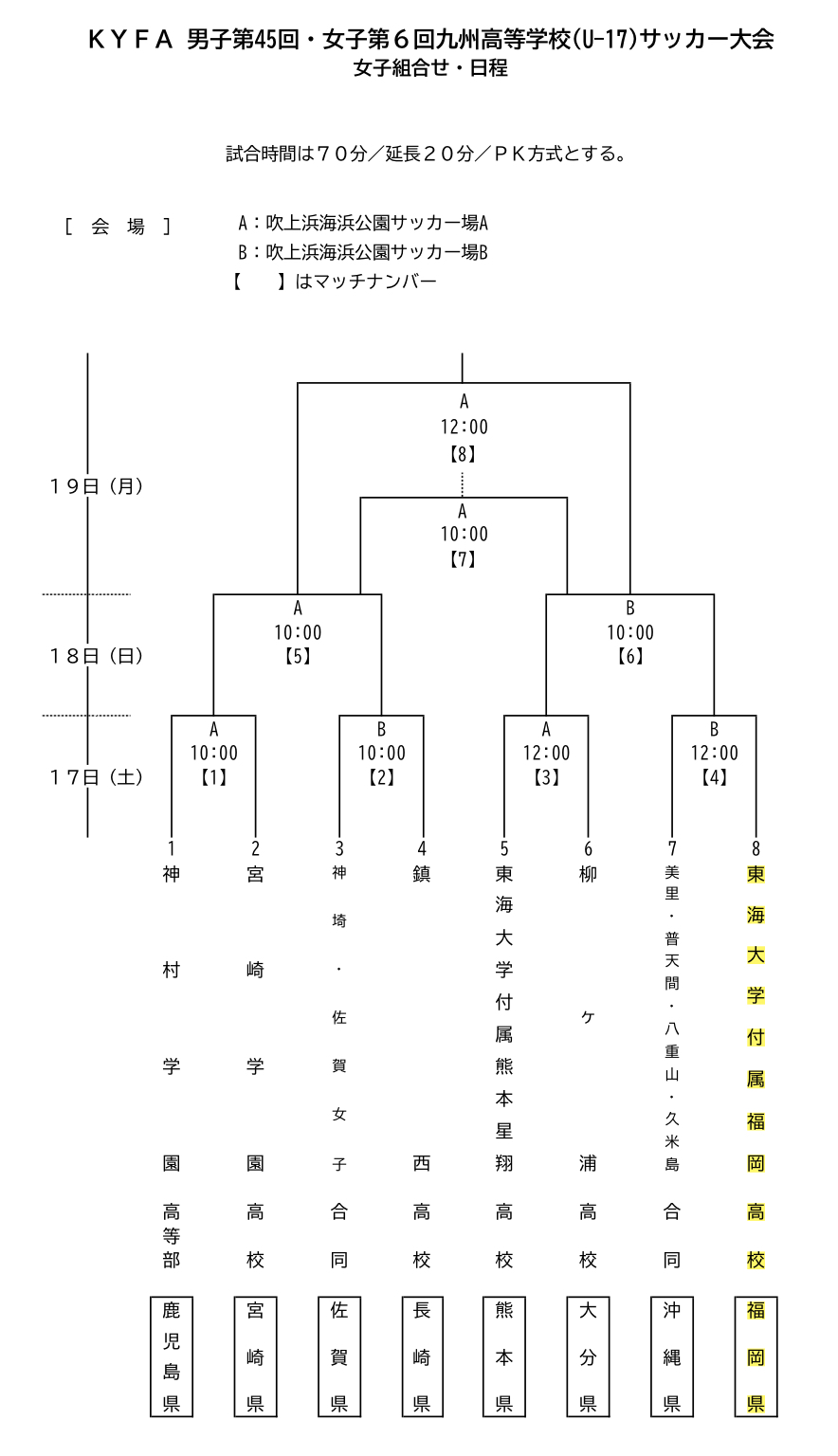 KYFA第6回九州高等学校女子サッカー新人大会 組み合わせ